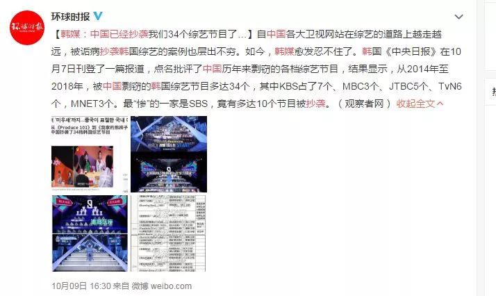 抄襲兩字在現代社會,是一個極度敏感的詞,但它有時候卻明目張膽地存在著,這在中國的綜藝節目上表現得非常明顯。十個綜藝節目九個是抄襲的,這不僅是對原創節目的不尊重,更是對觀眾的不尊重。根據韓國《中央日報》調查的結果顯示,從2014到2018年間的中國涉嫌抄襲韓國的節目就高達34部。